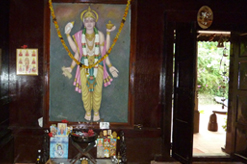 Le Niramayam est un endroit rare car les propriétaires qui l'ont transformé en hôpital ayurvédique y vivent encore. Les familles Nambudiri sont très connues dans le Kerala où elles figurent au sommet de la hiérarchie du savoir ayurvédique et de la caste des brahmanes. Pas de surprise donc à trouver un temple important sur le domaine, ainsi que des objets anciens, deci, delà, dans un décor