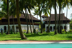 du siècle dernier, empli de bois rares et de tons ambre et pastel. Le bois foncé, comme bien souvent au Kerala est aussi bien présent, et s'harmonise avec la beauté des lieux.